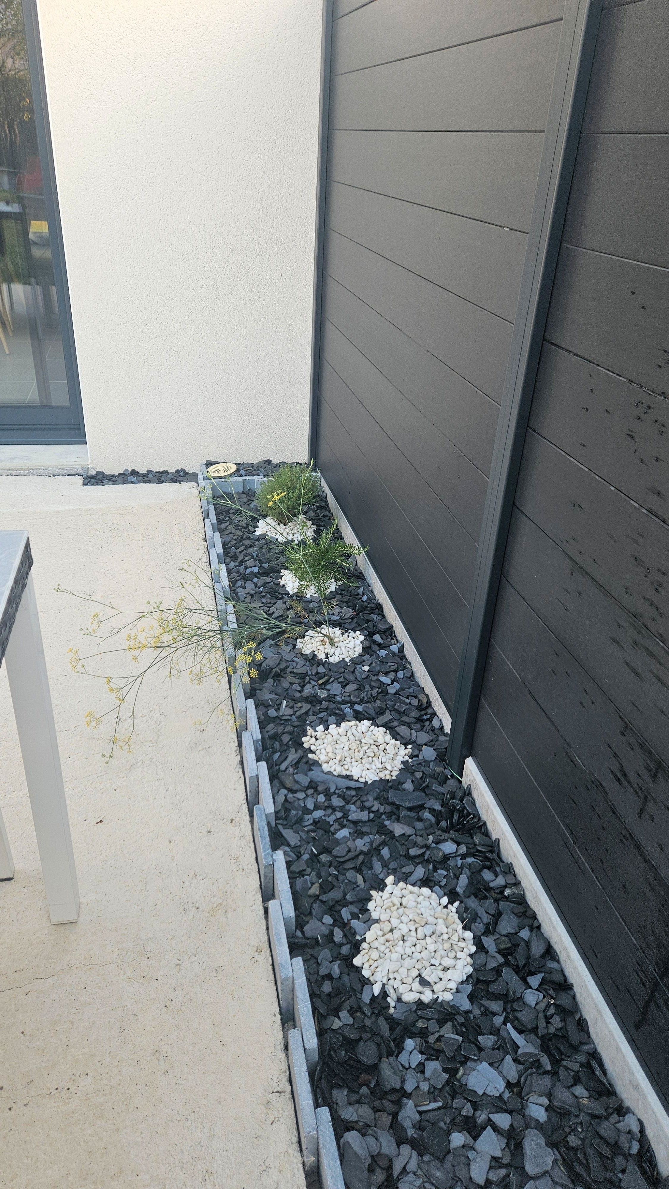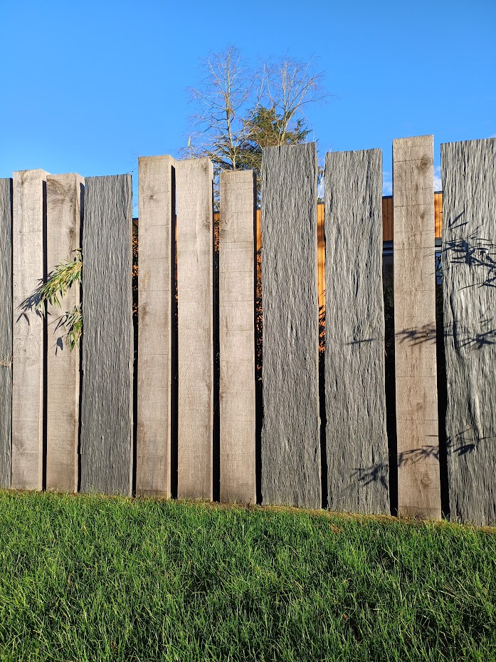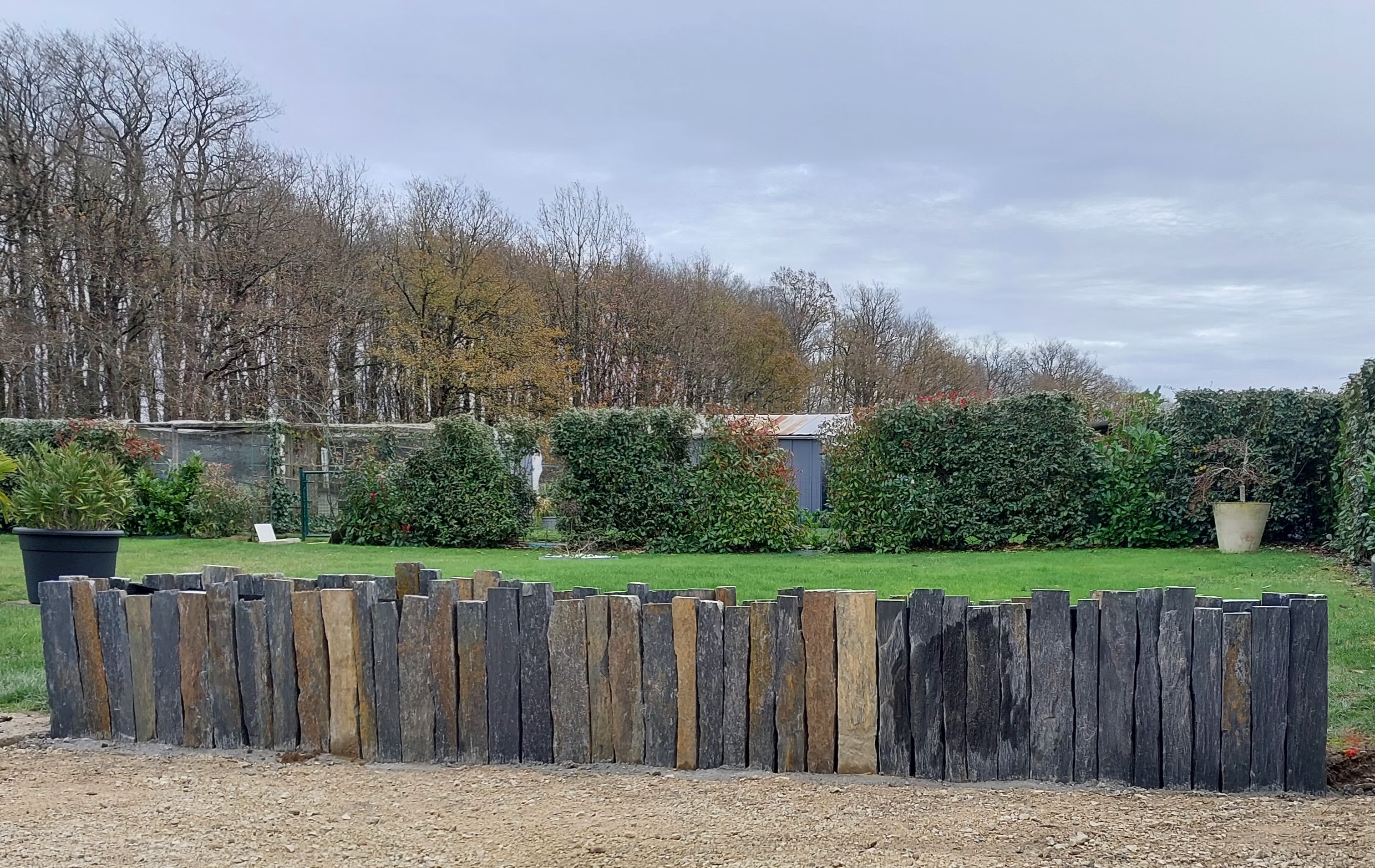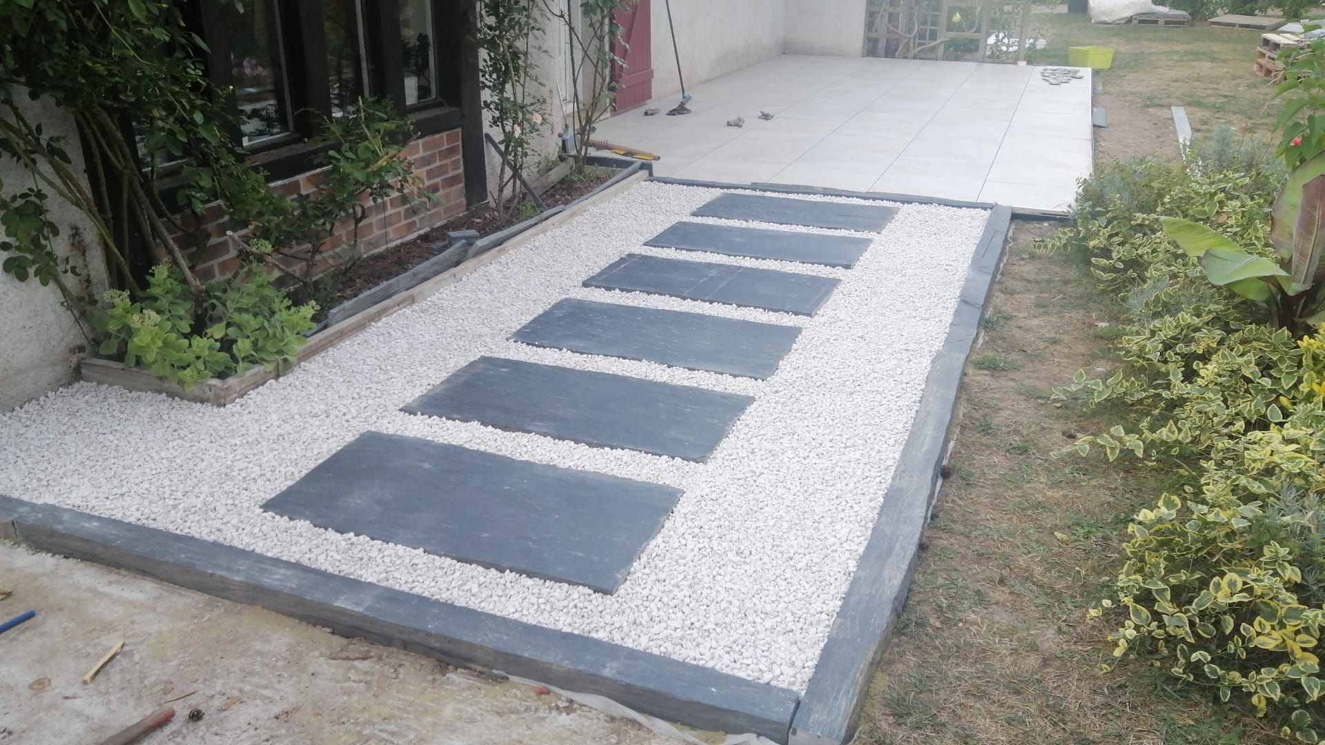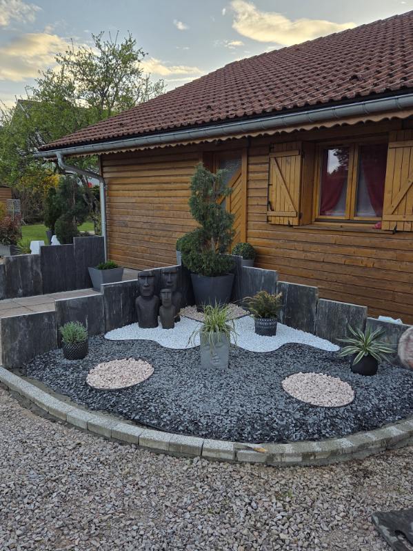 On a utilisé des piquets et des pavés en schiste pour aménager le jardin et les allées. Le résultat est top, ça fait propre et ça donne tout de suite du cachet à l’extérieur. Le matériau a l’air vraiment solide et la qualité est au rendez-vous. Rien à redire.