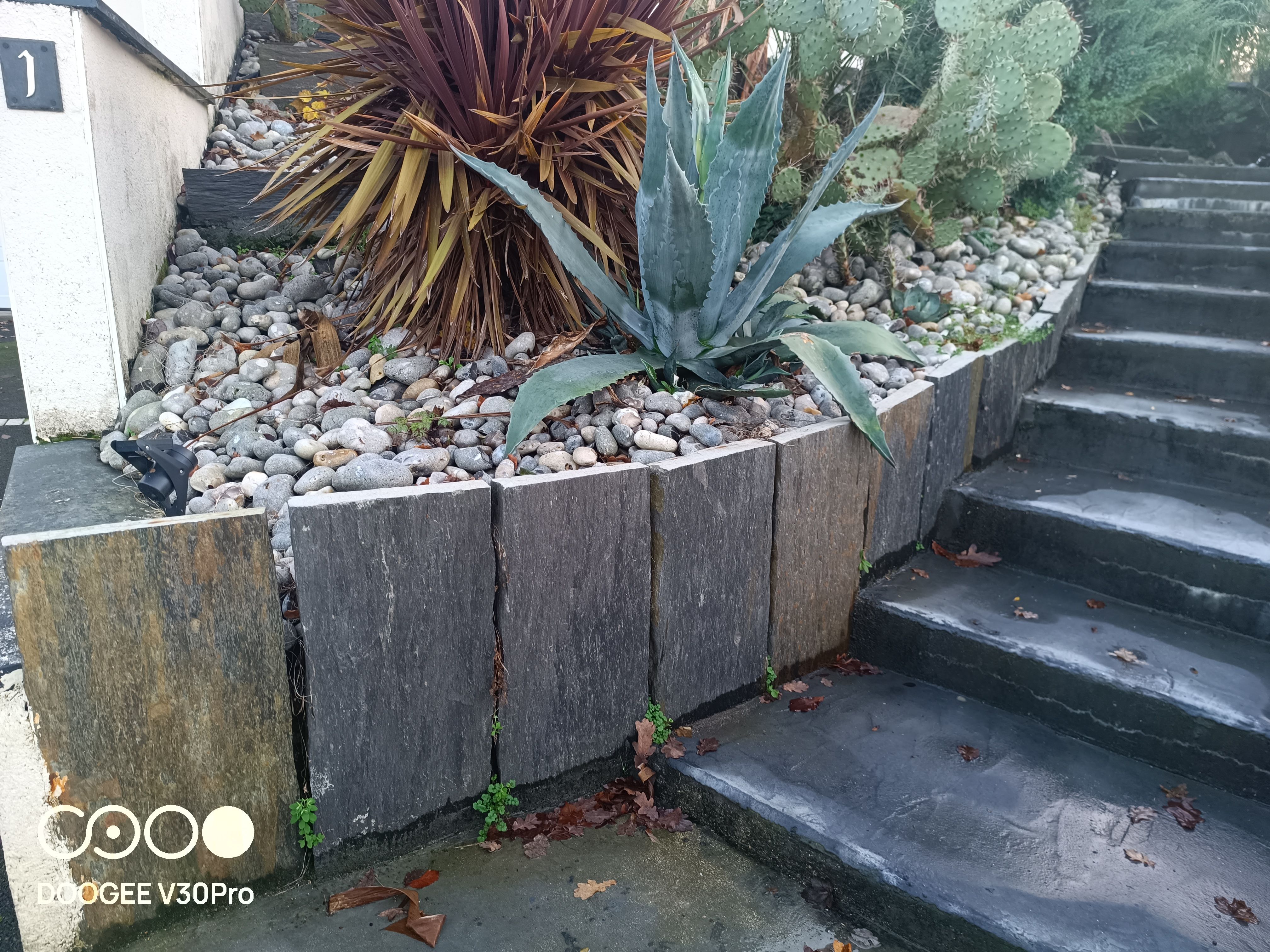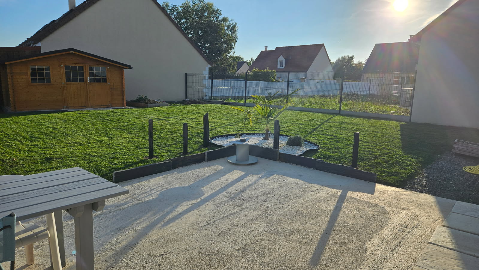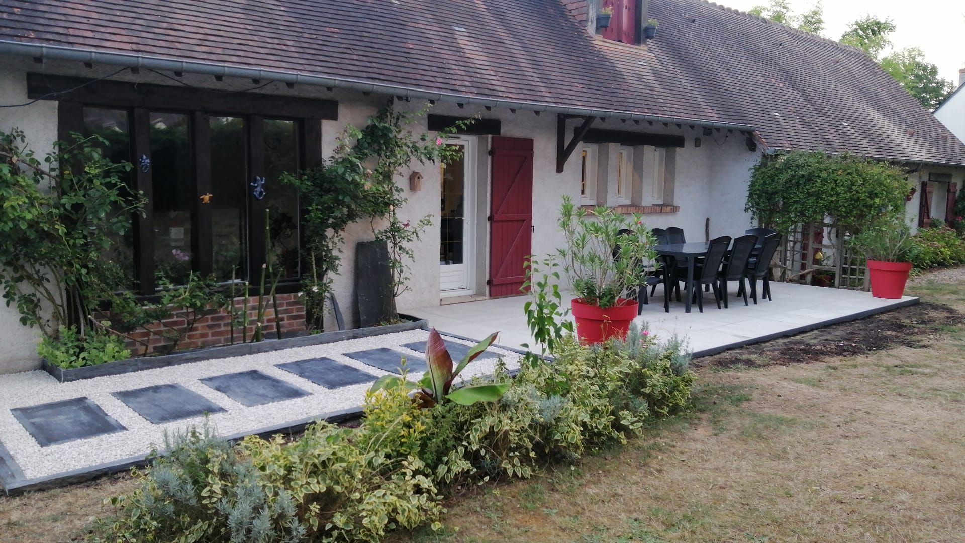 On a utilisé des piquets et des pavés en schiste pour aménager le jardin et les allées. Le résultat est top, ça fait propre et ça donne tout de suite du cachet à l’extérieur. Le matériau a l’air vraiment solide et la qualité est au rendez-vous. Rien à redire.
